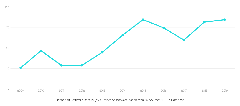 We dug through the latest numbers and analyzed the National Highway Traffic Safety Administration (NHTSA) recall database to shed light on the current state of software related recalls in the US automotive industry and the challenges automakers face.