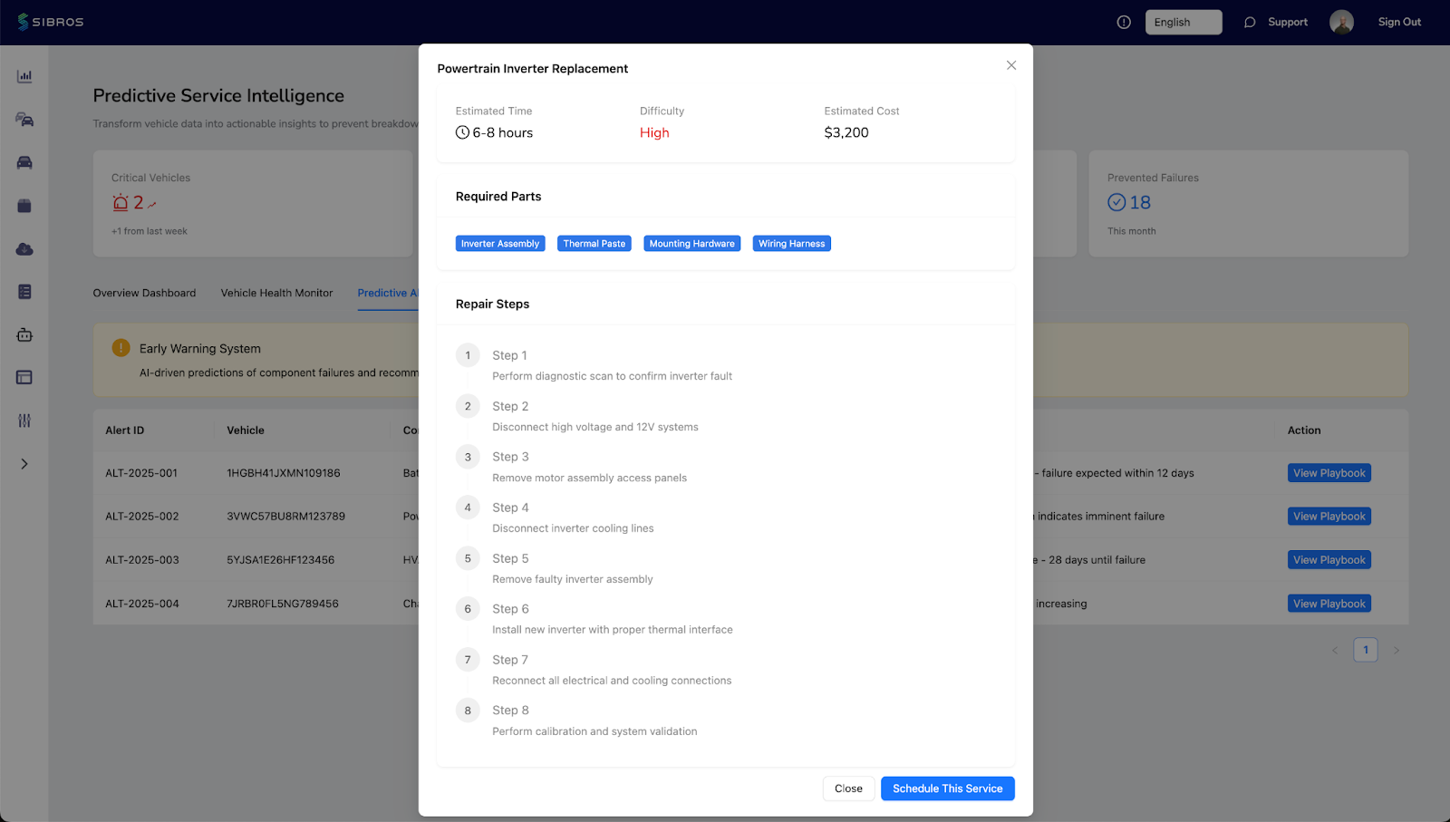 Early warning systems and repair playbooks address a different but equally important failure mode: the gap between knowing something is wrong and knowing what to do about it. Even with good diagnostic data, technicians face inconsistent repair outcomes when procedures aren't standardized and parts recommendations aren't tied to actual fault patterns.